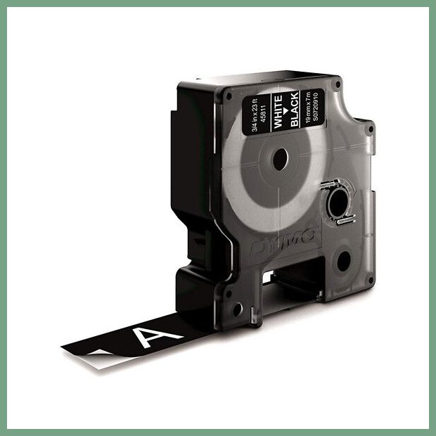 Tarranauha Dymo D1 19mm x 3,5m musta/valkoinen Flexible Nylon