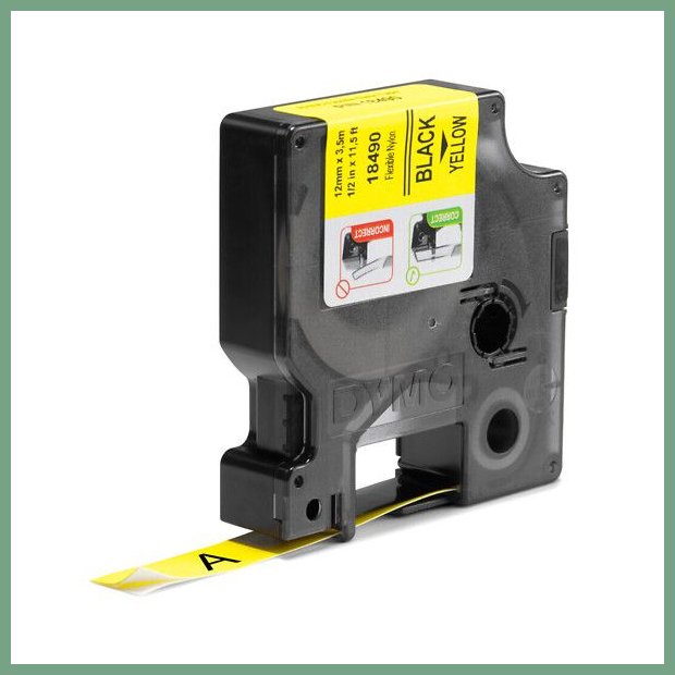 Tarranauha Dymo Rhino 12mm x 5,5m musta/keltainen, nailon hinta 22,04€