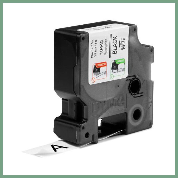Tarranauha Dymo Rhino 19mm x 5,5m musta/valkoinen, vinyyli. Tämän erinomaisen toimistotuotteen verkkokauppatilauksen toimitus perille kestää 1-2 päivää. Erityisesti johtojen ja kaapelien sekä pyöreiden pintojen merkitsemiseen. UL969 hyväksytty. Repeämätön materiaali. Voidaan käyttää myös dymo labelmanager kirjoittimissa. Kasetin ulko-osat ovat 100%:sti kierrätysmateriaalista. Tehokas toimituspalvelumme kuljettaa tarranauhan ilmaisella toimituksella toimitusosoitteeseen kello 8.00 - 15.00. Helsinki, Pori, Espoo, Vantaa... eli kaikkialle Suomeen.