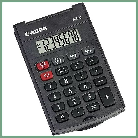 Taskulaskin Canon AS-8. Se on tasokas laskin, joka toimitetaan heti kun sitä saapuu varastoon (n. viikko). 8 numeron taskulaskin Pienikokoinen, kevyt ja kaarevasti muotoiltu Laskimen kotelo ja kansi on valmistettu Canonin kierrätysmateriaalista Kestävä, 360 astetta ylöspäin kääntyvä kansi Suuri nestekidenäyttö Mitat: Syvyys :9,7cm Korkeus: 1,1cm Leveys: 6. Tehokas toimituspalvelumme kuljettaa taskulaskimen ilmaisella toimituksella toimitusosoitteeseen kello 8.00 - 15.00. Kuopio, Turku, Helsinki... eli kaikkialle Suomeen.