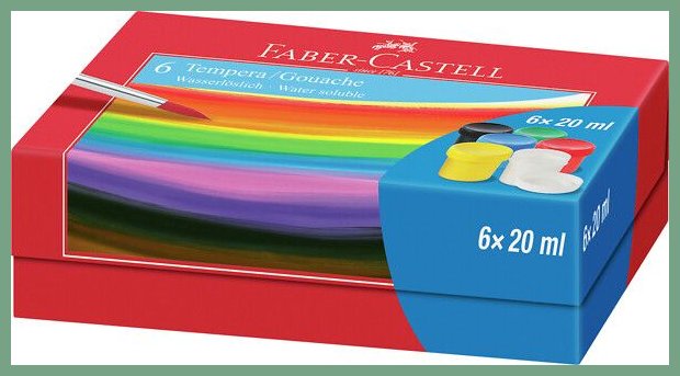 Teampera/Guassivärit 6 väriä 20 ml/väri. Se on hyvä askartelutarvike, joka toimitetaan heti kun sitä saapuu varastoon (n. viikko). Värikylläiset tempera/guassivärit pienille taiteilijoille esimerkiksi päiväkoteihin tai kouluihin. Väreillä voi maalata lähes kaikille pinnoille ja pigmenttikylläiset värit eivät lohkea tai halkeile. Paketissa on kuusi väriä: sininen, vihreä, musta, punainen valkoinen ja keltainen. Maalipurkeissa on kierrekansi ja yhdessä purkissa on 20 ml väriä. Tehokas sopimuskuljetuksemme toimittaa tämän tuotteen ilman toimituskuluja toimitusosoitteeseen työpäivän aikana (8 - 15). Helsinki, Pori, Espoo, Vantaa... toisin sanoen kaikkialle Suomeen.