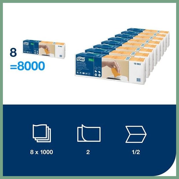 Tork Xpressnap N4 Extra Soft oranssi 8x1000kpl. Se on erinomainen kahviotuote, jota toimitetaan kun sitä saapuu varastoon (n. viikko). Tork Xpressnap® Premium lautasliina on täydellinen toimistoon ja itsepalveluravintolaan. Auttaa vähentämään lautasliinojen kulutusta vähintään 25 % verrattuna perinteisiin lautasliina-annostelijoihin. Kaksikerroksinen Tork Xpressnap® Extra Soft valkoinen annostelijaliina on ihanteellinen yrityksille, jotka kaipaavat käteviä ratkaisuja ja kustannustehokkuutta ja jotka haluavat antaa laadukkaan vaikutelman. Yksilöllinen pakkausratkaisu, jossa nippujen suojana on muovipussi, joka helpottaa hygieniaa ja käsittelyä. Suurempi (avattuna) lautasliina, joka sopii mihin tahansa ruokailutilanteeseen. Tekniset tiedot: Järjestelmä: N4 - Tork Xpressnap® annostelijaliina -järjestelmä. Laatu: Premium. Kerroksia: 2. Painatus: Ei. Kohokuviointi: Kyllä. Väri: Oranssi. Mitat: Pituus taittamattomana - 21.3 cm, Leveys taittamattomana - 16.5 cm, Pituus taitettuna - 10.7 cm, Leveys taitettuna - 16.5 cm. Pakkauskoko: Tuotetta myydään laatikoittain. Pakkauskoot paketissa on 1000 kappaletta, laatikossa on 8 pakettia. Luotettava sopimuskuljetuksemme toimittaa tämän tuotteen ilman toimituskuluja toimitusosoitteeseen työpäivän aikana (8 - 15). Kuopio, Turku, Helsinki... siis minne tahansa Suomeen.