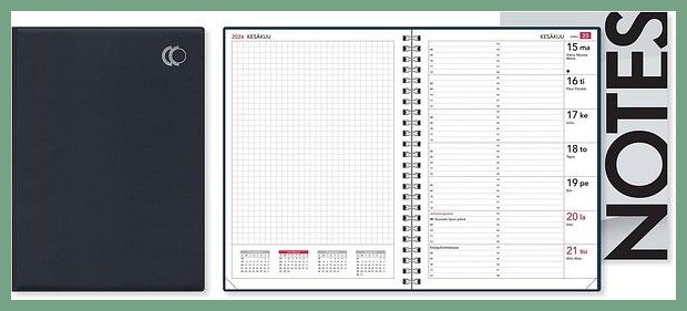 Uniplanner 2026. Tämän erinomaisen kalenteritarvikkeen verkkokauppa tilauksen kuljetus perille asti kestää 1-2 päivää. Kätevä käyttää ja tehdä muistiinpanoja. Kalenterin koko on A5, viikot 51/2025-1/2027, projektit, vuosisuunnittelut 2026 ja 2027. Aukeamalla muistiinpanosivu ja viikon kalenteritiedot tuntimerkintöineen 8-18, liputuspäivät, nimipäivät, kansalliset pyhät luettelona. Siirrettävä Notes-muistio. Wiresidottu, kulmaperforoitu. Siniset kovat kannet. Saatavana myös yleisvuosipaketti viime vuoden kansiin. Suomenkielinen. Painettu FSC-sertifioidulle paperille. Varma toimituspalvelumme kuljettaa tilauksen toimitusosoitteeseen kello 8.00 - 15.00. Kuopio, Turku, Helsinki... eli kaikkialle Suomeen.