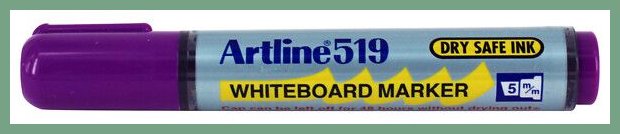 Valkotaulutussi Artline EK-519 viisto lila 2-5mm. Se on erinomainen toimistotuote, jonka verkkokauppa tilauksen kuljetus perille asti kestää 1-2 päivää. Artline 519 on valkotauluille ja myös elektronisille valkotauluille tarkoitettu viistokärkinen huopakynä. Kynissä on ns. dry safe ink -muste, joka toimii jopa 48 tuntia vaikkei tulppaa suljettaisi välillä. Kynissä on kestävä kuitukärki ja ksyleenitön muste. Tehokas sopimuskuljetuksemme toimittaa valkotaulutussin toimitusosoitteeseen työpäivän aikana (8 - 15). Kuopio, Turku, Helsinki... siis minne tahansa Suomeen.