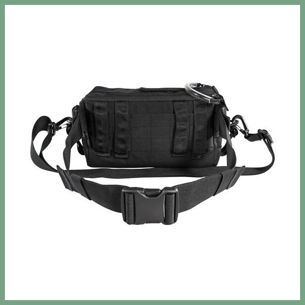 Vyölaukku TT Small Medic Pack MKII Shoulder Bag Medic MKII musta. Se on hyvälaatuinen ensiaputuote, joka toimitetaan heti kun sitä saapuu varastoon (n. viikko). Laukun päällä on kaksi vetoketjua, joten tarvikkeisiin pääsee nopeasti käsiksi. Laukku voidaan kiinnittää myös MOLLE-systeemillä esimerkiksi reppuun tai liiviin. Laukun etuosassa on läppä, johon saa esimerkiksi vaatesakset kätevästi kuminauhalenkeillä kiinni. Väri: musta Ominaisuudet: - Mitat: 26 x 15 x 12 cm - Paino: 700g - Tilavuus: 3 l. Täsmällinen sopimuskuljetuksemme toimittaa vyölaukun ilman toimituskuluja toimitusosoitteeseen työpäivän aikana (8 - 15). Turku, Oulu, Helsinki... eli kaikkialle Suomeen.