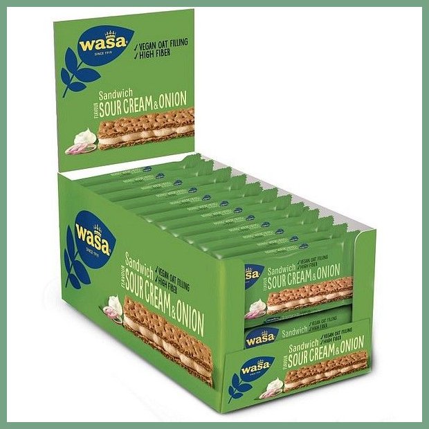 Wasa Sandwich 33g sour cream & onion. Se on tasokas kahviotarvike, jonka verkkokauppatilauksen toimitus perille kestää 1-2 päivää. Aineosat: Ruisnäkkileipä (TÄYSJYVÄRUISJAUHO 67%, hiiva, suola),täyte 39% (TÄYSJYVÄKAURAHIUTALEJAUHO 18%, rapsiöljy, sheavoi,hapankerman ja sip ulin aromi 3,9%). Saattaa sisältää pieniä määriä seesaminsiemeniä, soijaa, maito ja lupiinia. Tuotannossa valmistetaan tuotteita jot ka sisältävät maitoa. Täsmällinen sopimuskuljetuksemme toimittaa lähetyksen toimitusosoitteeseen työpäivän aikana (8 - 15). Helsinki, Pori, Espoo, Vantaa... eli kaikkialle Suomeen.