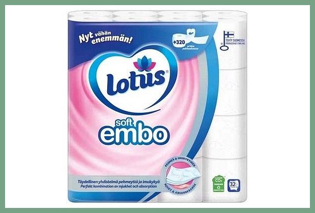 Wc-paperi Lotus Soft Embo 3-krs, 32rll/sk. Se on laadukas tuote, jonka verkkokaupan tilauksen toimitus kestää 1-2 päivää. Korkealaatuista ja luotettavaa Lotus Soft Embo -wc-paperia on valmistettu Nokian paperitehtaalla jo yli 40 vuotta. Sen täydellinen yhdistelmä pehmeyttä ja imukykyä takaa erityisen miellyttävän käyttökokemuksen. Hellävarainen Lotus Soft Embo sopii myös herkemmälle iholle. Lotus Soft Embo -wc-paperirullissa on Flush&Go® -hylsy, jonka voi kierrättää, kompostoida tai huuhtoa. Flush&Go® -hylsy hajoaa veteen kuten wc-paperi. Lotus Soft Embo wc-paperit valmistetaan Suomessa Nokian paperitehtaalla. Tuotteella on EU Ecolabel -ympäristömerkki ja se on dermatologisesti testattu. Valmistettu FSC-sertifioidusta kuidusta. Rullat on pakattu kierrätettävään pakkaukseen, joka sisältää vähintään 30% kierrätysmuovia. Pakkauksen voi kierrättää muovijakeeseen. Wc-paperit myydään säkeittäin, säkissä on 32 rullaa. Täsmällinen toimituspalvelumme kuljettaa wc-paperin toimitusosoitteeseen kello 8.00 - 15.00. Helsinki, Pori, Espoo, Vantaa... eli kaikkialle Suomeen.
