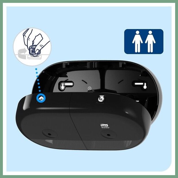 Wc-paperiannostelija Tork Twin Mid-size musta, T7 Tork